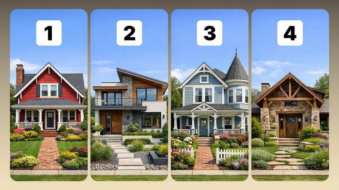 Lai veiktu psiholoģisko testu, rūpīgi apskatiet četras mājas un izvēlieties to, kas ar jums visvairāk rezonē. Mēģiniet atkāpties no loģikas un pārāk ilgi nedomāt – pirmais iespaids būs vispatiesākais.